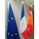 LOT DE 3 DRAPEAUX AVEC MAT ALU avec socle acier triple en volume.