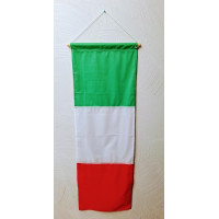 ORIFLAMME ITALIE queue de pie Italie maille polyester ourlets 4 côtés tourillon bois et cordelette de suspension. Prix de base pour d'une oriflamme de taille standard de 40x120cm. Autres formats au choix à sélectionner.