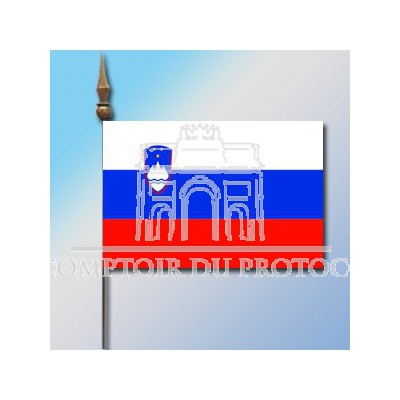 DRAPEAU DE TABLE SLOVENIE TISSU 10X14CM. Socle bois vernis en option.