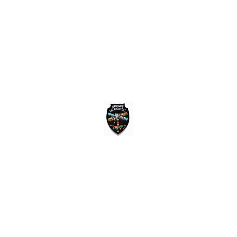ECUSSON TISSU BRODE modèle GROUPE DE COMBAT, feutrine noir, fil brodé couleur et fil doré/argenté. A coudre. Offre de déstockage jusqu'à rupture de stock.
