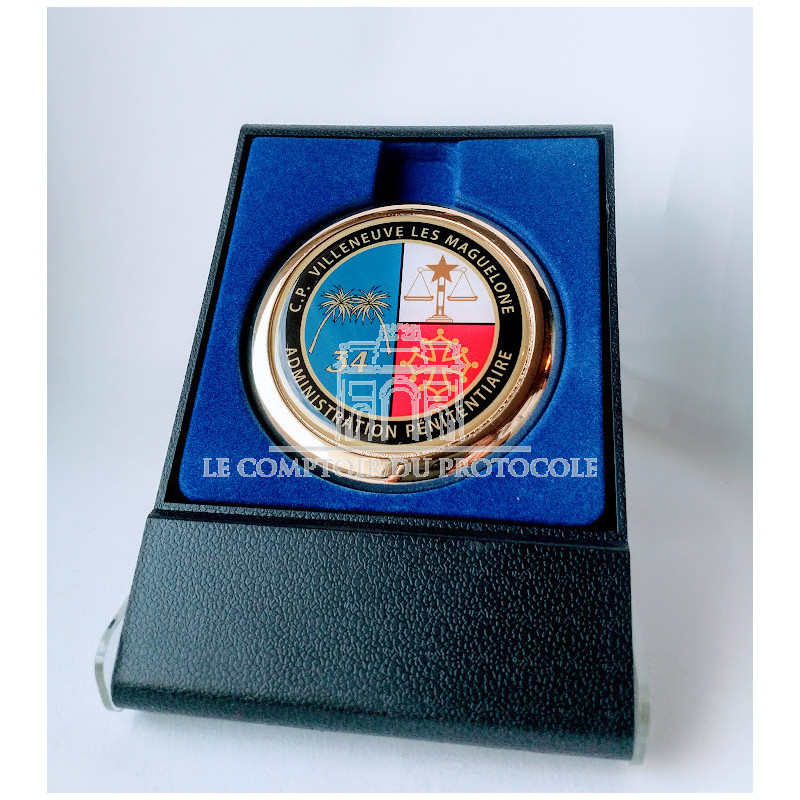 Diamètre médaille 70mm. Revers neutre. Ecrin chevalet inclus.