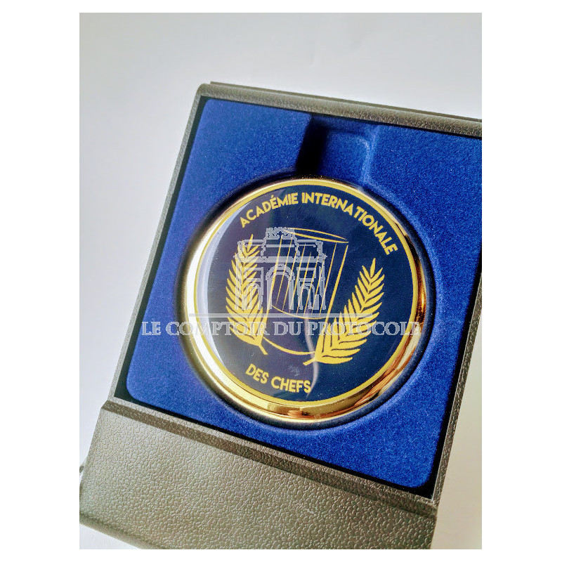 Diamètre médaille 70mm. Revers neutre. Ecrin chevalet inclus.