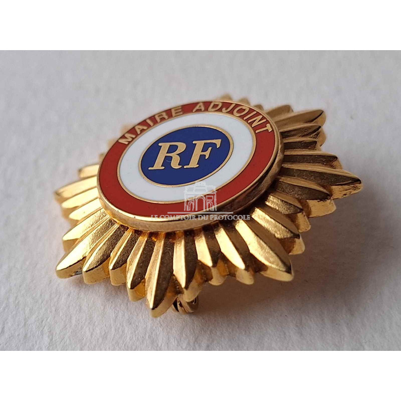 Il est constitué d'une cocarde tricolore, sur laquelle se trouvent les mentions "RF" et "Maire Adjoint" en métal doré.