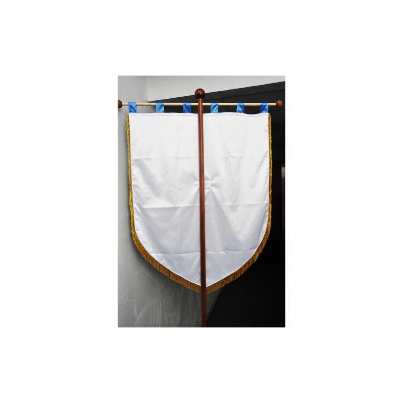 Face recto imprimée en couleur, verso neutre blanc avec passant pour hampe bois.