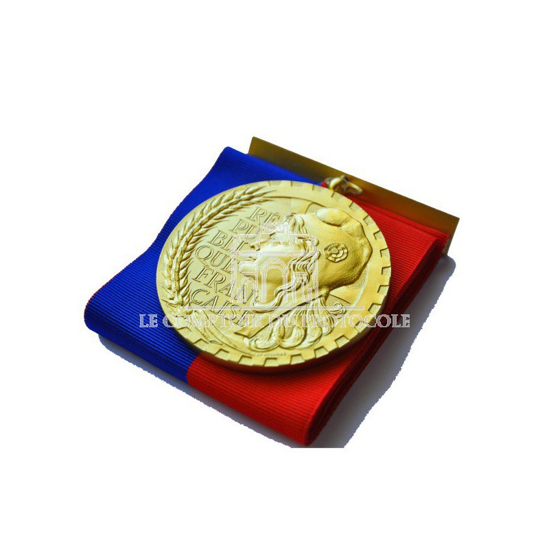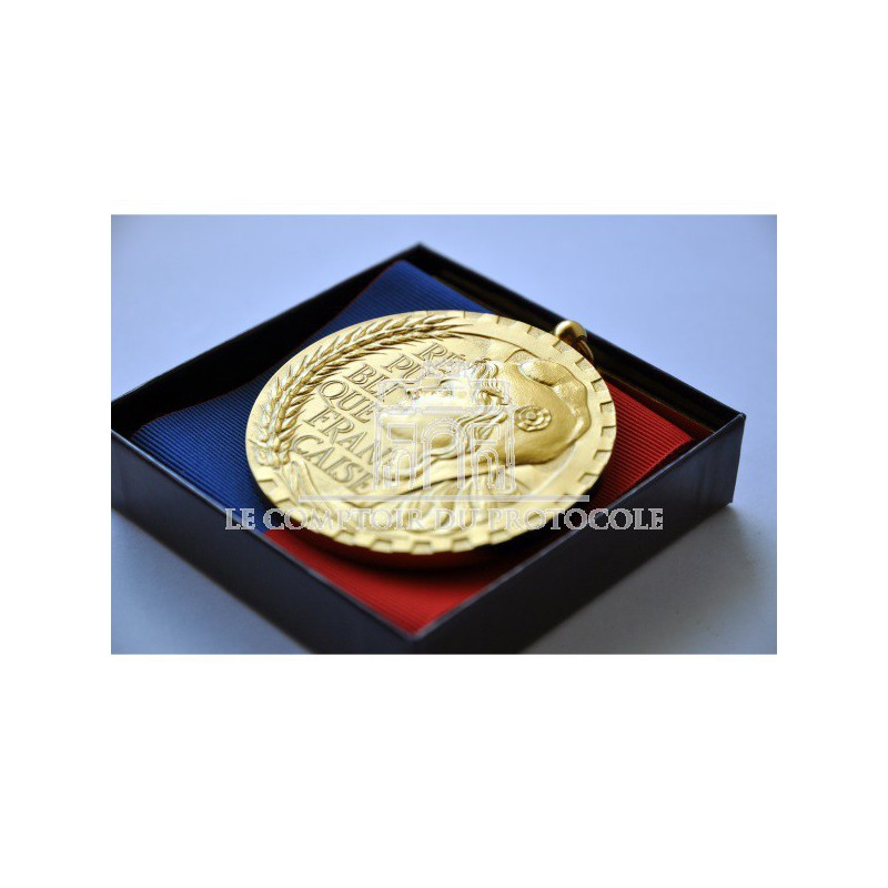 Médaille en qualité bronze doré, de diamètre 63mm.