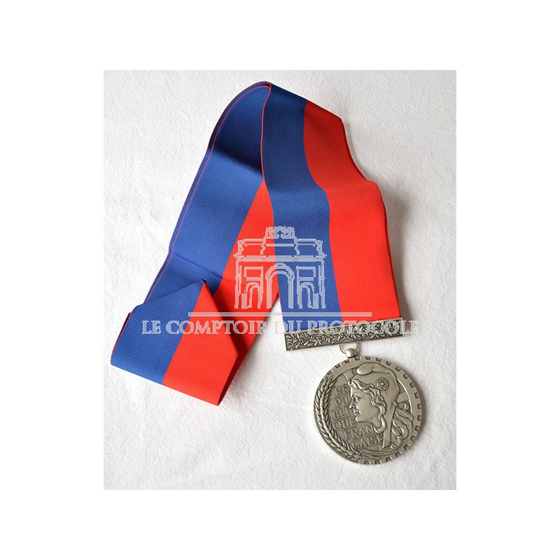 Médaille en qualité bronze argenté, de diamètre 63mm. La gravure est obligatoire.