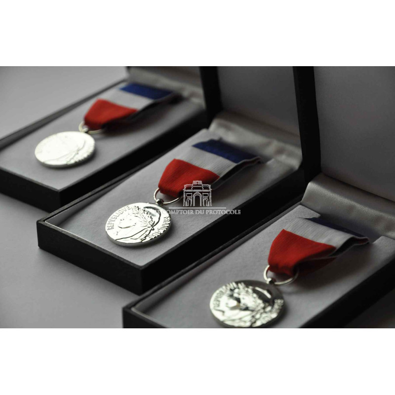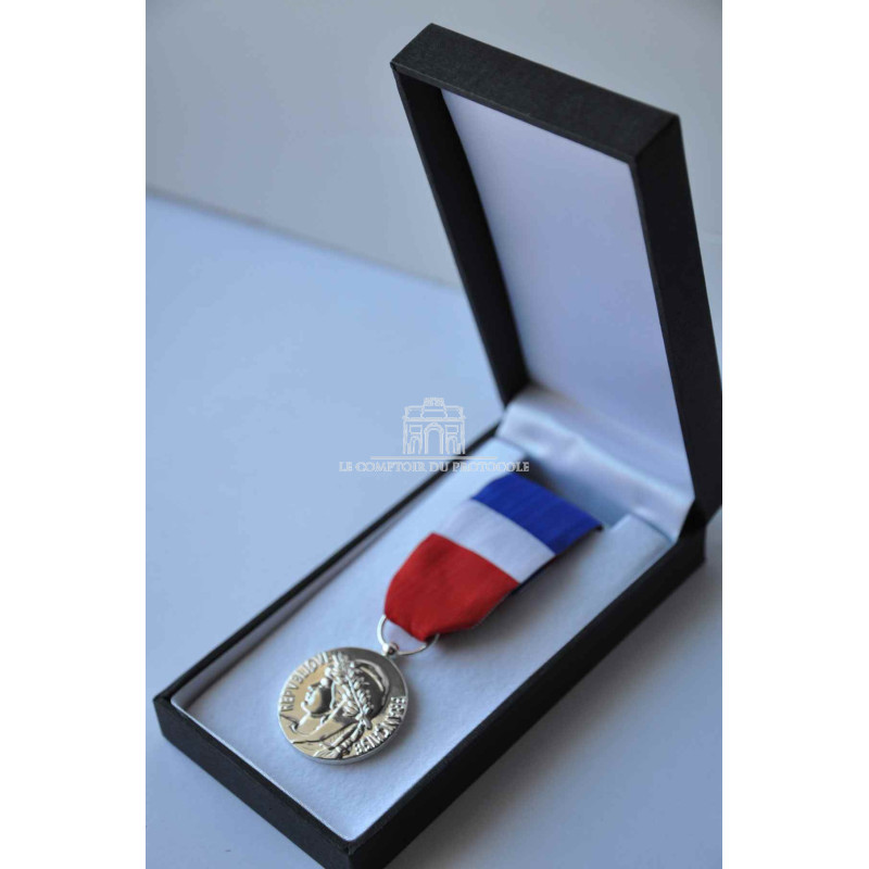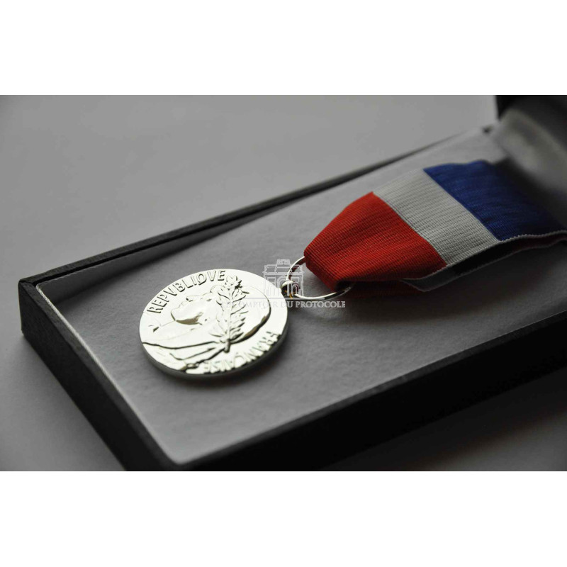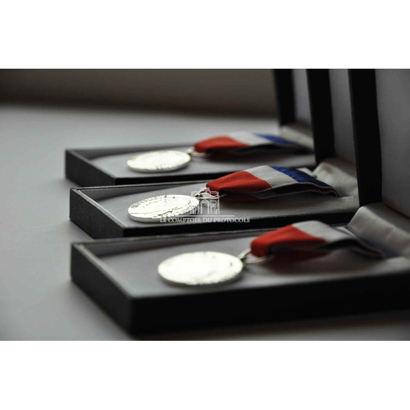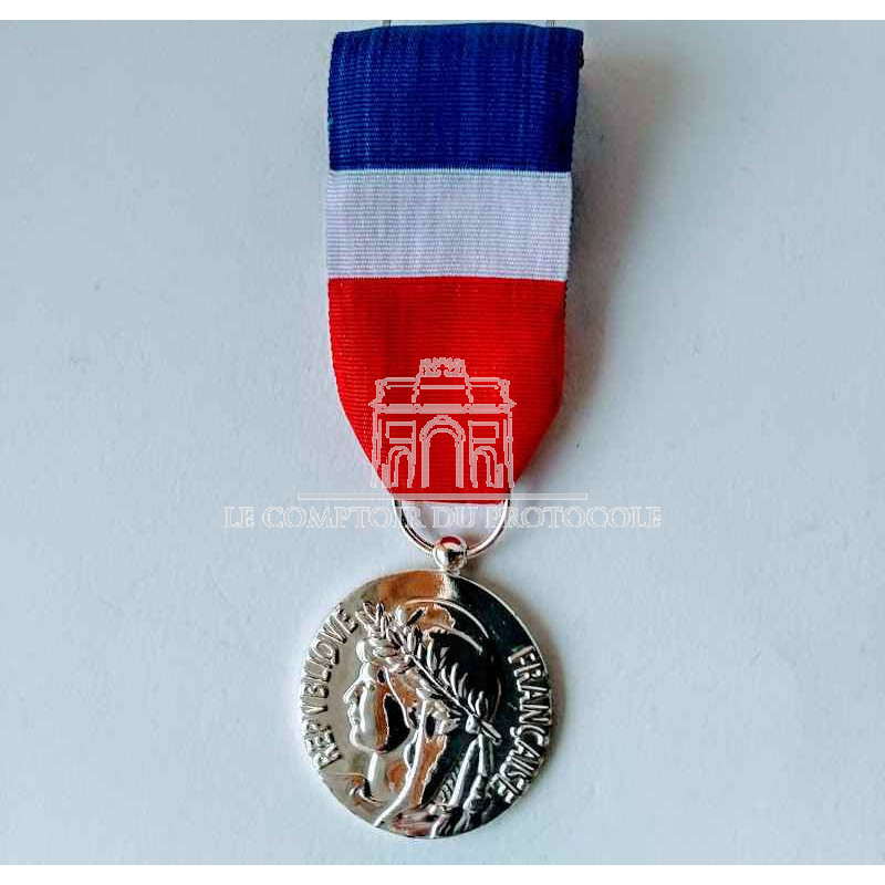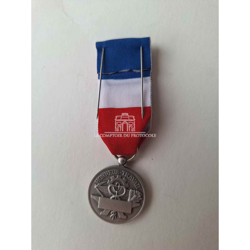 MEDAILLE DU TRAVAIL 20 ANS - qualité métal argenté, modèle ANCIENNETE. la gravure est recommandée, au revers de la médaille, avec initiale du prénom, nom en toutes lettres et année de promotion.