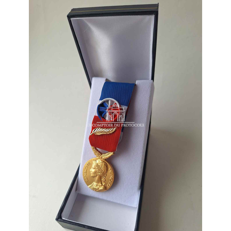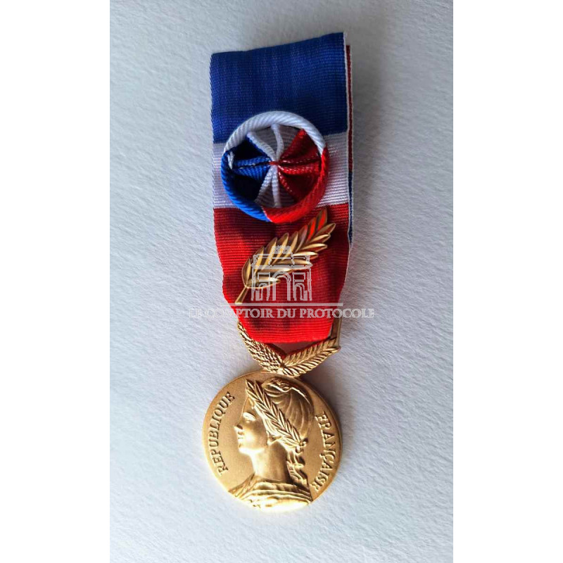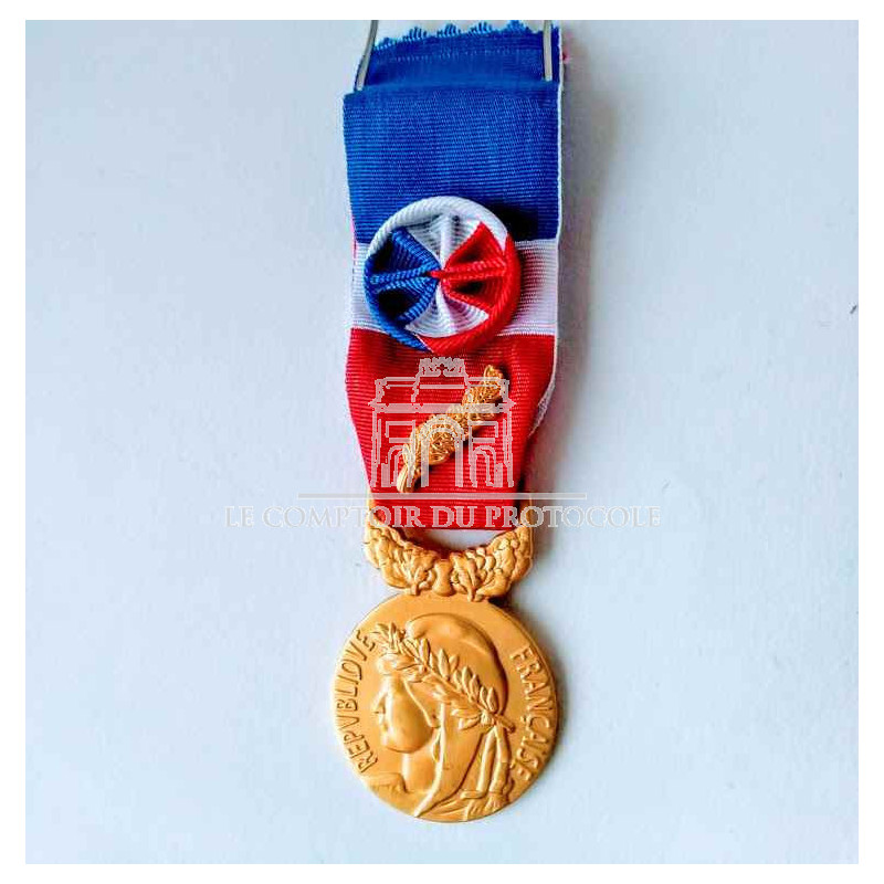 qualité bronze doré, rosette tricolore tissu et palme métal dorée, modèle ANCIENNETE.