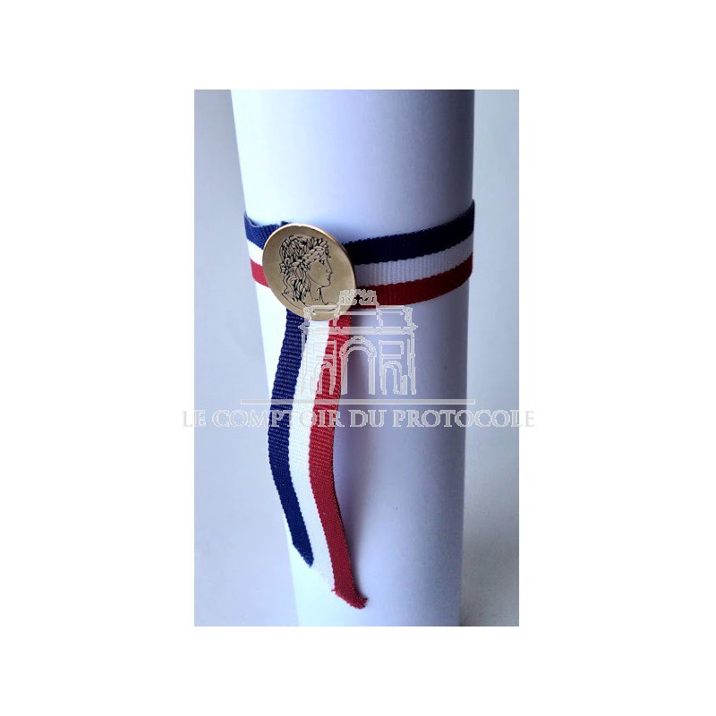 RUBAN DIPLOME TRAVAIL avec bouton Marianne, réservé aux diplomés de la médaille d´honneur du Travail. Tricolore. livré sans diplôme.