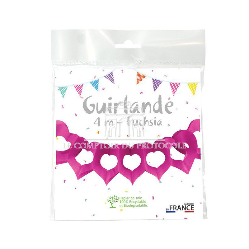lot de 5 GUIRLANDEs PAPIER 2 COEURS FUSHIA 4M