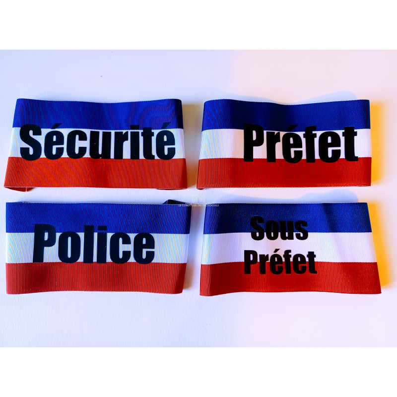 BRASSARD DE PREFET TRICOLORE avec élastique, pour la police nationale, services préfectoraux, Sécurité Publique DDSP ou autres services.