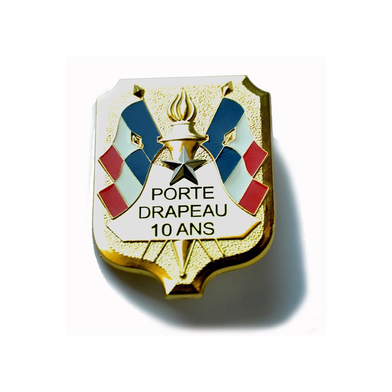 insigne porte-drapeau 10 ans étoile argent, grand modèle, revers épingle. Qualité officielle.