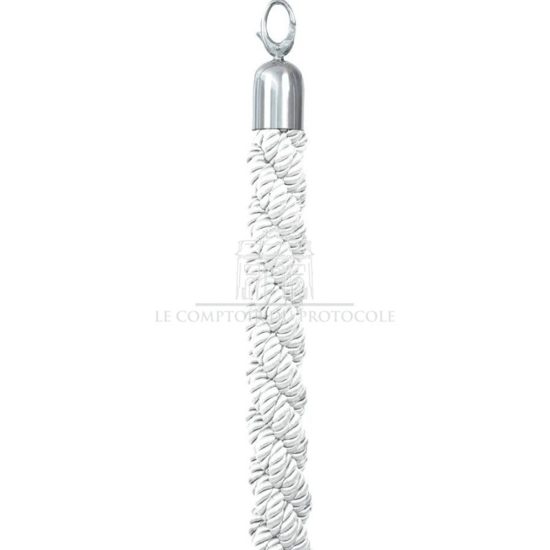 Corde tressée de 2m avec embouts chromés pour potelet d'accueil.